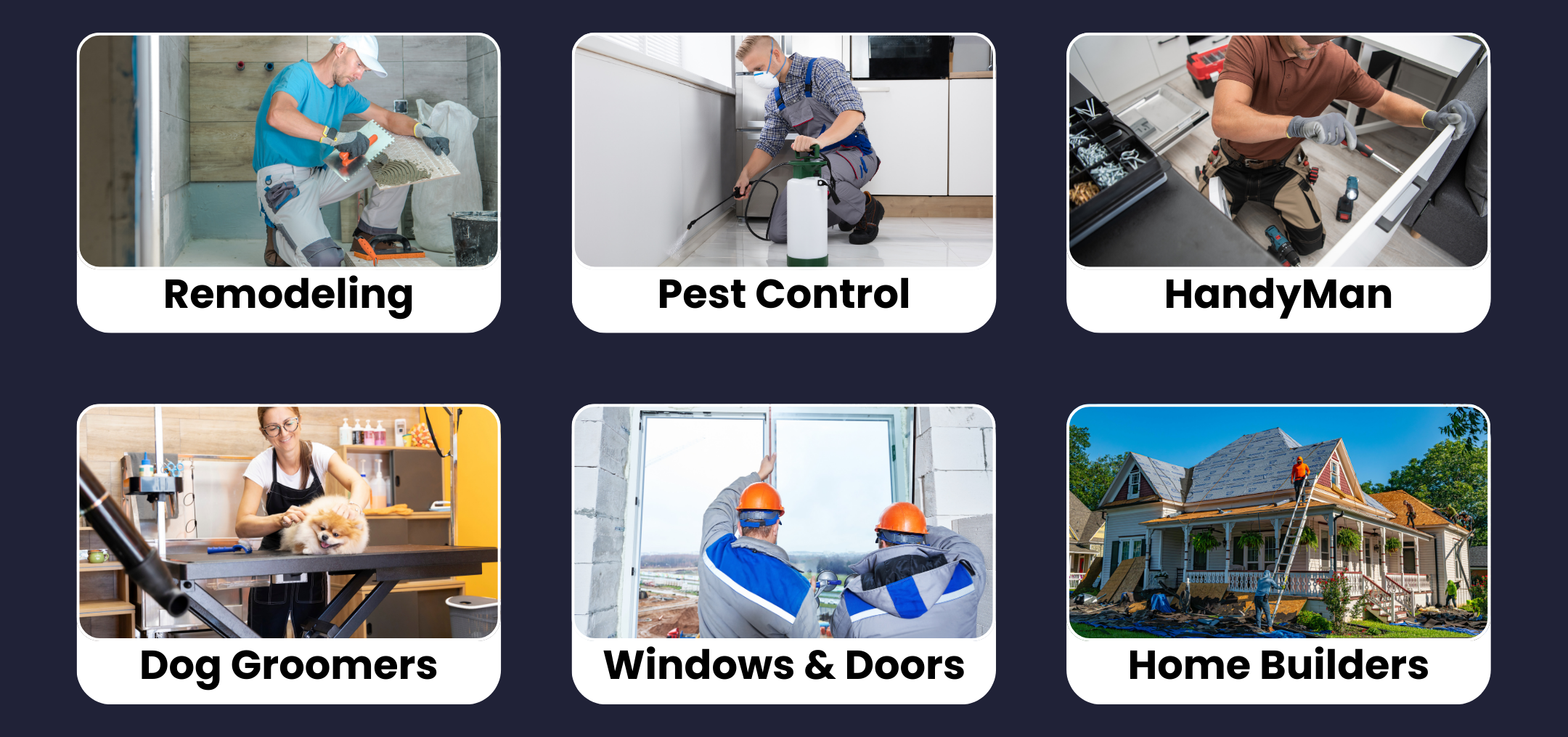 You should contact us, we work with all types of trades and small businesses. Due to the sheer volume of trades we serve, it's impractical to list them all.